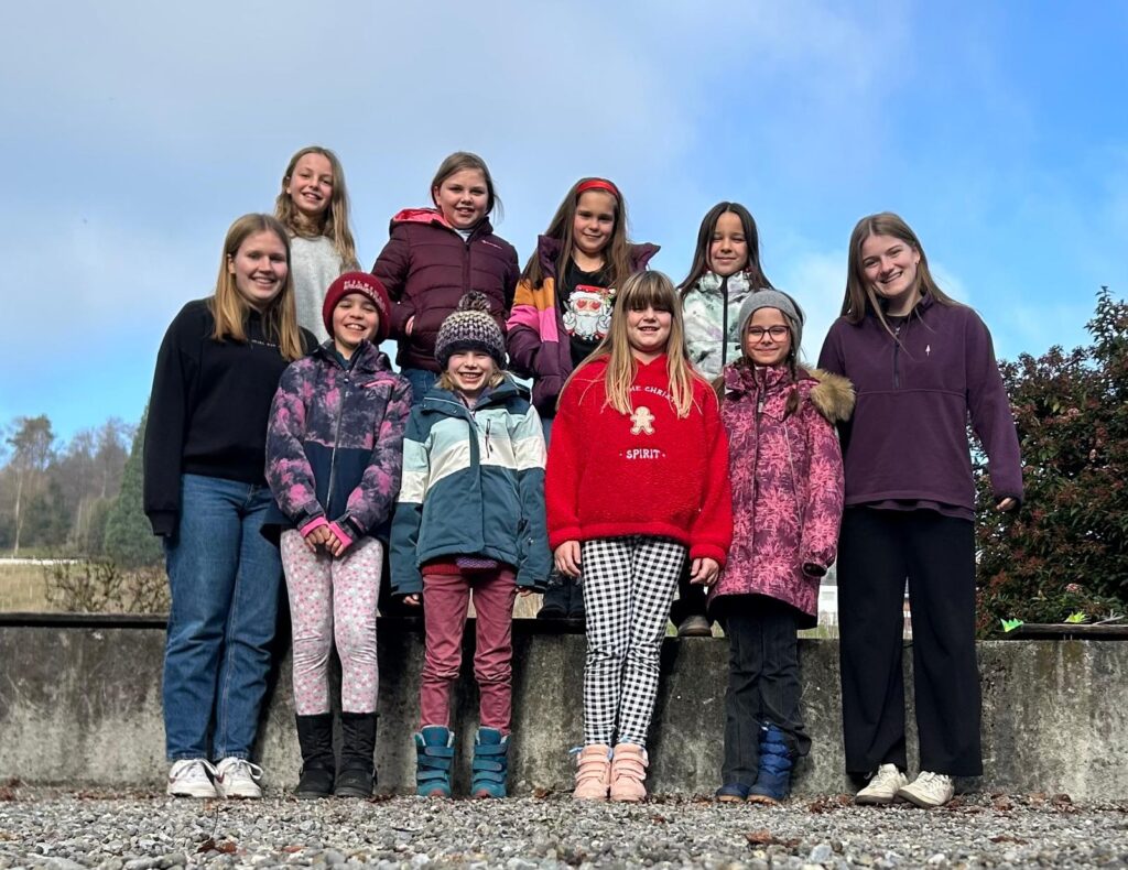 Mir sind d’Gruppe Kaleas und zwar d’Aurelia, d’Maelle, d’Elen, d’Julia, d’Norina, d’Mia, d’Jivin, d’Estelle, d’Lenja, d’Lienne, d’Elisha, d’Francesca, d’Elin, d’Nina, d’Maeva und d’Lia. Üsi Leiterinne sind d’Jana, d’Francine, d’Samira und d’Moja.